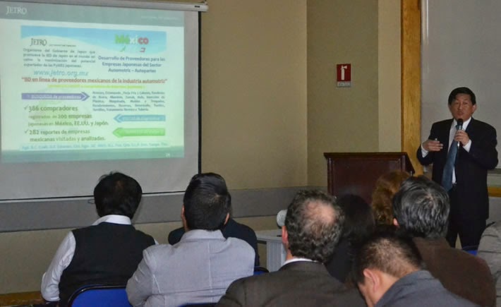 El director adjunto de Jetro (The Japan External Trade Organization), Víctor Nakano, hizo una presentación a los directivos de las empresas de autopartes del Estado de México principalmente y reiteró la necesidad de “fomentar la industria de soporte para apoyar las inversiones japonesas”, trabajo que iniciara desde hace varios años atrás con la conformación de organismos como Jetro y Jica (Japan International Cooperation Agency) en colaboración con instituciones educativas públicas con el objetivo de capacitar a las empresas y desarrollar recursos humanos.